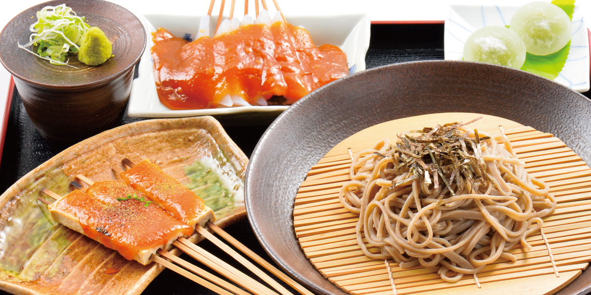 十割そばのそば粉は、福井県産のもののみを使用。 そば作りに大切なお水も、「福井のおいしい水」に認定された 徳雄長「酒清水」の湧き水を使用し、 地産地消にこだわっています。