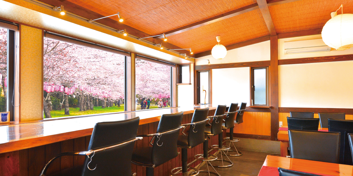 春になると、満開の桜を目の前に 本格手打ちそばをお楽しみいただけます。